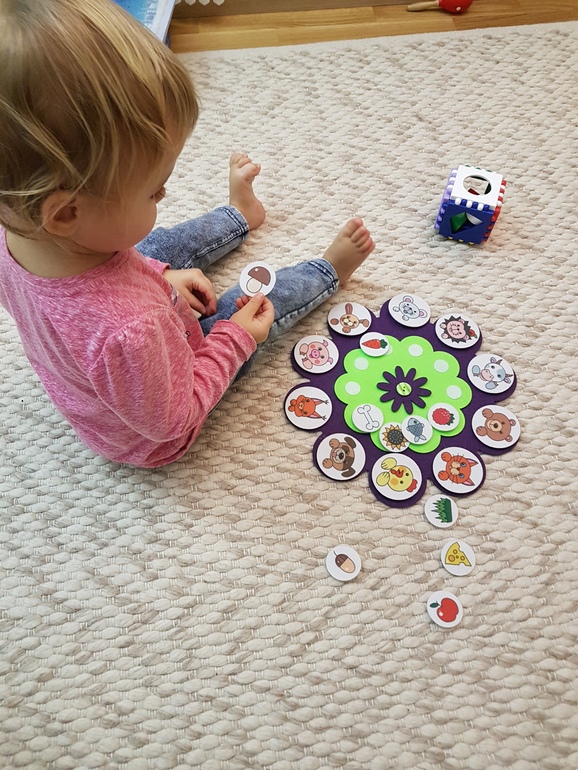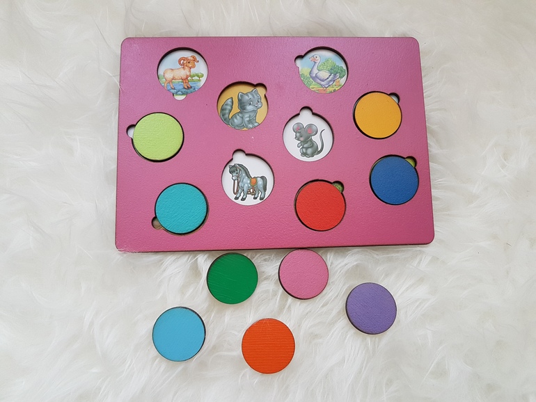 Секретики. Играем на память - где баранчик, например? Проговариваю цвета окошек. Поняла, что надо купить какую-то палитру с правильными названиями цветов. Может даже у той же "умницы". Ну и просто выкладывать и вкладывать окошки дочке интересно. Называть животных.