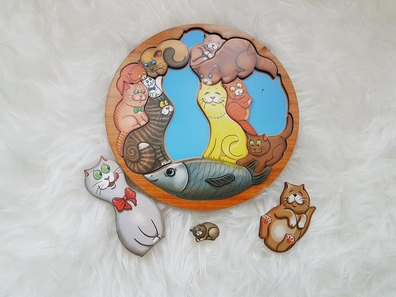 Пазлы -вкладыши "кошки". Тоже думала на будущее и тоже зря.) Дочь с задачей справляется.