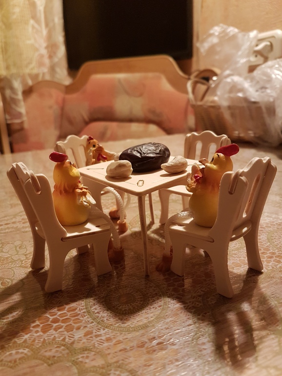 Набор миниатюрной мебели. На будущее больше. Но мелкие игрушки тоже могут пообедать.