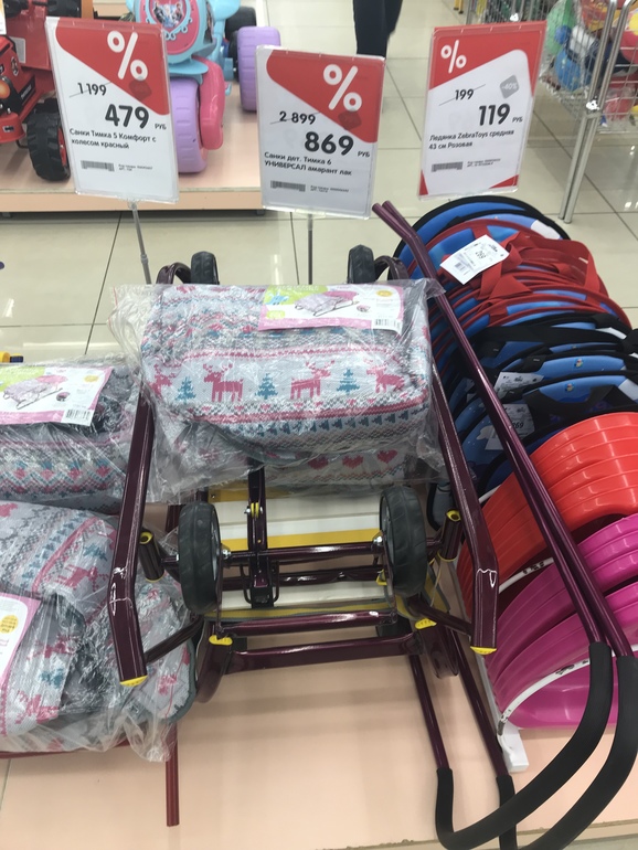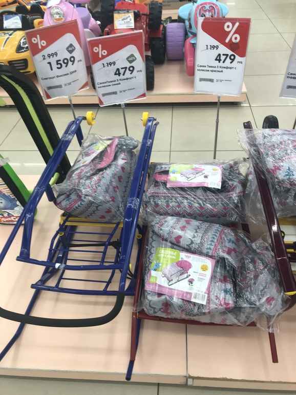 тоже сегодня приобрели санки и накидку в Зеленограде,санки красные забрали последние, с синими полосками еще 4 шт оставалось и все охранник сказал- все разобрали, на витрине то что есть,снегокаты тоже все вынесли ,остались в ближайшем магазине по 1200 неколько шт и все , тот который понравился в наличии только в Воронеже показал, я еще подумала что город теплый снега меньше чем в Мск вот и не раскупили,а сейчас смотрю по посту тоже все раскупается