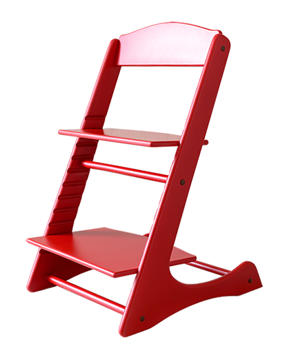 Ребенку для правильного формирования позвоночника очень важна опора на ноги. Когда он опирается на ноги под углом 90 градусов, он держит прямо спину. Когда пишет, в локте должно быть 90 градусов. Деревянный стул гораздо проще в уходе, нежели другие стульчики с мягкой обивкой, клеенкой, большим количеством "наворотов", в которые забивается еда. Это я на себе испытала.