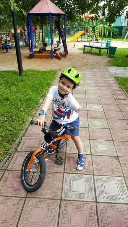 Мы беговелом пользовались с 3.5 до 3.9 потом перешли на велосипед в 5 лет мне кажется он нам мал уже сын у меня не высокий не больше 110 см