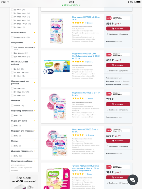 огромное спасибо!!! взяла мериисов 2 пачки по 599, памперс 1 большую за 299, цены сказка)