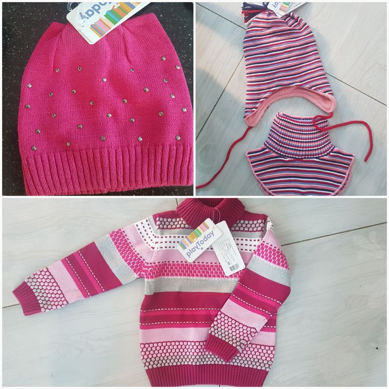 Из минусов...по шапкам и раньше отзывы были неоднозначные о размерах,я не брала.В малышковых бодиках-комбезах,иногда, отлетали кнопки.Плащёвые штаны промокают,стираются до дыр на коленях,также в слитниках(брала родственница).