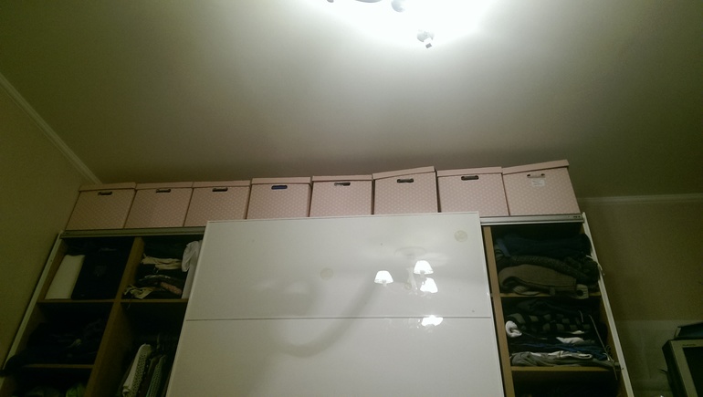 на балконе большой шкаф-там висит верхняя одежда: и та, что куплена старшей на вырост, и та, которую хочу оставить для младшей. Главное, на забыть, что уже куплено, и не купить повторно в приступе распродажного шопоголизма)))