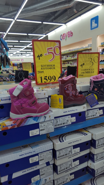 Репортажи из магазиновЗаходила сегодня в магазин на Косыгина - народу никого, видела, что многие интересовались Скороходом, стоит на распродаже,не знаю, хорошая цена или нет. И на Котофей мембрану распродажа.
