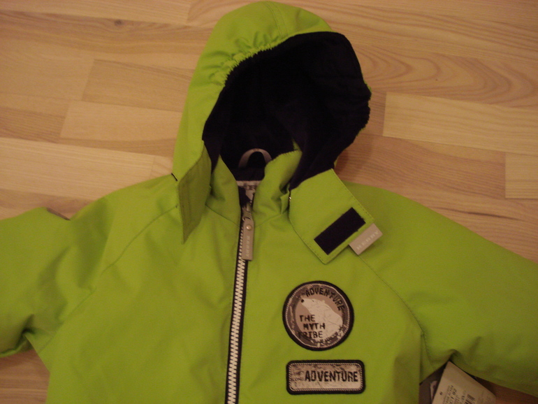 Kerry Peter 92 размера, вышел 4018 руб. Моя любовь! Цвет яркий, сочный как зеленое яблоко. Ткань плотная, водонепроницаемость 10000. Попа, воротник и капюшон отделаны мягкой пушистой тканью, не флис (состав подклада 55% вискоза, 45% полиэстер). Капюшон и карманы на кнопках, есть съемные силиконовые штрипки. На спине на светоотражателях надпись кerry, но на фото со вспышкой не видно.
