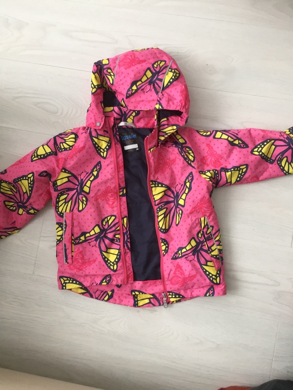 Детская одеждаДевочки-мамочки! Вы все знаете! Подскажите, пожалуйста, на какую погоду курточка Лесси розовая с бабочками ( вроде 80 г) и штаны розовые Лесси тоже. Фото прилагаю.