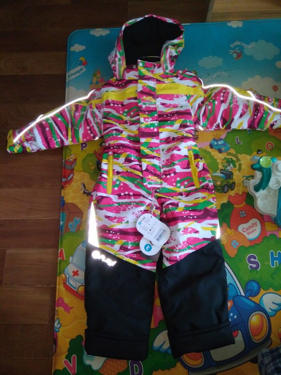 Комбинезон мне понравился, но не идеальный: отсутствует внутри защита от снега, достаточно широкая горловина, кнопки на руковах не держат и самое большое разочарование было, что спустя пару дней дочка упала на колено на асфальт и оно протерлось прилично.