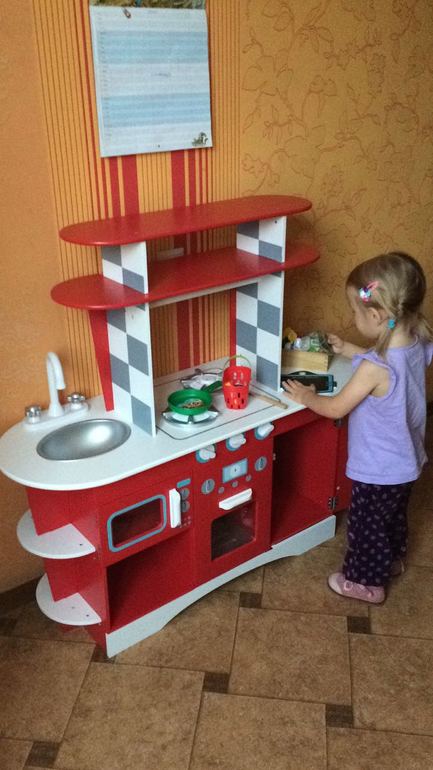 Кухня с посудой/овощами/фруктами однозначный фаворит! Ещё из увлекающих каталка такая (постоянно падают, она их по-новому собирает, то по цветам, по разноцветными, и эмоции озвучивает смешно) такая