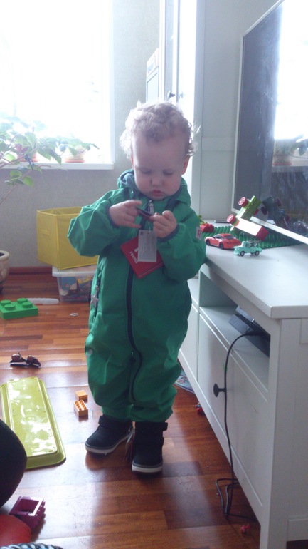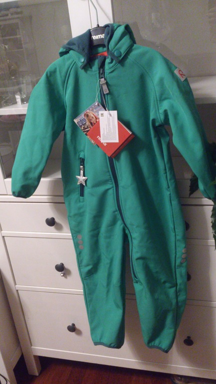Далее софтшелл комбез. Как я боялась, что ребёнок не оденет на себя (потому что он категорически не воспринимает комбезы). Но это единственный комбинезон, который он одевает с удовольствием (на примерку пока):