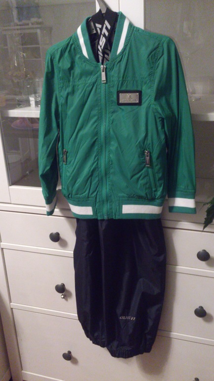 Ну а на совсем тепло (но сыро) ветровка Reima на сетке + сначала брюки Kerry без утеплителя, если перерастём, то Gusti. На замену ветровка Jacob Lee (жуткая маломерка - размер 110-116 идентична 98 Reima) на мягком хлопке). Ну и кроссовки Diesel на ножки.