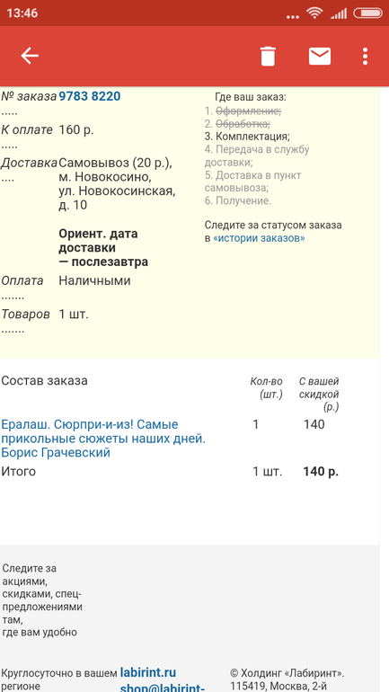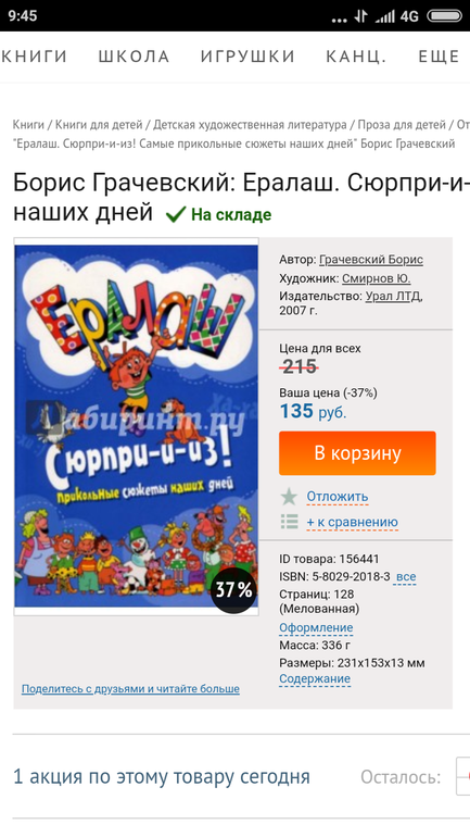 Катовская в Выбор товаров 8 лет Скидка на книжный сайт Распродажи. Скидки. Акции. Девочки , кто может со скидкой поделиться? Посмотрите еще 20 записей на эту тему Отменить Ответить Ёсико У меня лабиринт есть 22.02.2018 Ответить Катовская А какая скидка? 22.02.2018 Ответить Ёсико От 17 до 34, в завистмости от книши и акций 23.02.2018 Ответить Катовская Нужна Книга Ералаш "Сюрприз" и носов "Витя Малеев в школе и дома", сориентируйте по цене, пожалуйста. 23.02.2018 Ответить Ёсико в наличии только верхние три 23.02.2018 Ответить Ёсико Ералаш сюрприз не нашла, пришлите ссылку 23.02.2018 Ответить Катовская https://www.labirint.ru/books/156441/ 23.02.2018 Ответить Ёсико 24.02.2018 Ответить Катовская Закажите, пожалуйста, в Новокосино 24.02.2018 Ответить Ёсико какие из книг? 25.02.2018 Ответить Катовская Ералаш Сюрприз Носова уже купила, поспешила 26.02.2018 Ответить Ёсико 26.02.2018 Ответить Катовская Спасибо!!! 26.02.2018 Ответить Катовская Добрый день! Подскажите, какая цена будет? https://www.labirint.ru/books/349806/ 03.03.2018 Ответить Ёсико Добрый, 475 без доставки до самоаывоза 03.03.2018 Ответить Катовская А самовывоз в Новокосино или Лермонтовский проспект цена одинакова? 03.03.2018 Ответить Катовская Укажите финальную цену и будем заказывать) 03.03.2018 Ответить Ёсико Да, 20руб 04.03.2018 Ответить Катовская Давайте в Новокосино, когда можно будет забрать? 04.03.2018 Ответить Ёсико 6.03 04.03.2018 Ответить Катовская Спасибо!!!! 04.03.2018 Ответить Катовская Проверьте, пожалуйста, не готов ли еще заказ? 05.03.2018 Ответить Ёсико Прибыл в пункт самовывоза 05.03.2018 Ответить Ёсико сегодня 140руб+20руб самовывоз 25.02.2018 Ответить Ёсико 25.02.2018 Ответить Алена Посмотрите, пожалуйста, сколько https://www.labirint.ru/books/442492/ Мне тоже Новлкосино удобно. 25.02.2018 Ответить Ёсико сегодня 301 руб +20 за самовывоз 25.02.2018 Ответить Алена Спасибо. Я тоже такую цену вижу. 25.02.2018 Ответить Irina На любой? 22.02.2018 Ответить Катовская да 22.02.2018 Ответить Irina Лабиринт 15,майшоп 13 помоему 22.02.2018 Ответить Катовская лабиринт 22.02.2018 Ответить Irina Присылайте в личку ссылки и на кого куда заказывать,оформлю 22.02.2018 Ответить Катовская А сколько будет стоить в любом магазине книга Рубальской сборник 03.03.2018 Ответить Катовская Собрание сочинений 03.03.2018 Ответить WB 3=2 опять WB пуховики на девочек пока все размеры Чаты Беременных Выберите чат: Январята-2026 Февралята-2026 Мартята-2026 Апрелята-2026 Майчата-2026 Июнята-2026 Июлята-2026 Августята-2026