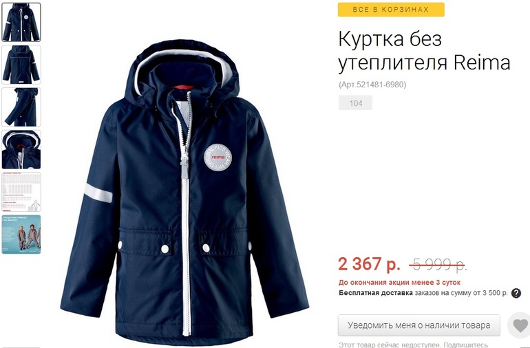 Распродажи. Скидки. Акции.На чикиРики куртка Reima Taag с подстёжкой-ЖИЛЕТКОЙ (не кофтой) размер 104. 2367. Если есть приветственные или мэйловские, вообще цена красота.