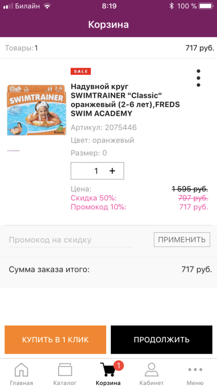 Девочки на него ещё проходит акция 3 товар бесплатно. Вообще по 531 руб выходит. Промокод F92A017C