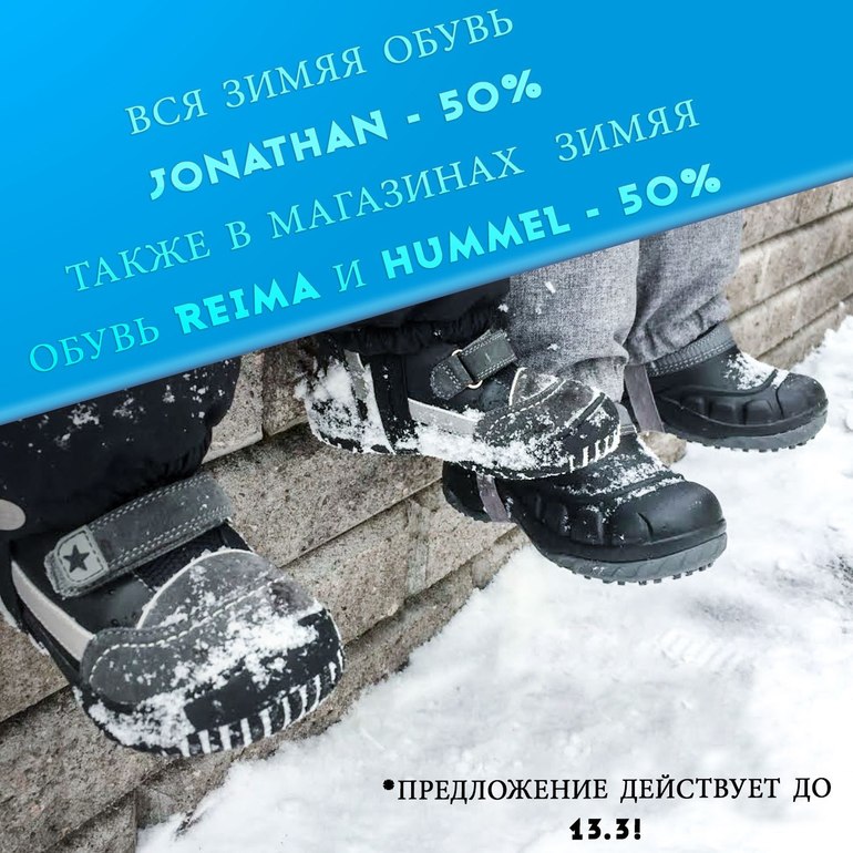 1.Скидка на зимнюю и часть демисезон,летней обуви 50%- до 13.03 -