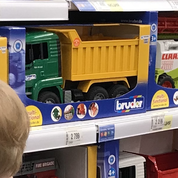 Наверное, на два дарили кран, он большой, а маленький погрузчик раньше, потому что сын еще не говорил, но их уже обожал, а после того, как на улице строители взяли детя посидеть в кабине, он вообще от счастья ошалел... 😍 среднему я покупала детскую серию Браудера, они реально неубиваемые, уже и дочка в грузовике сама каталась) так что дарила б на два детскую серию, и не парилась)) кстати, весь наш залюбленный брудер я осенью отнесла в сад, и его там тоже любят, каждый день) да, стрела крана плавно не выходит, и ковш у погрузчика отломился, но игрушками еще действительно интересно играть, потому что осталась куча других функций!