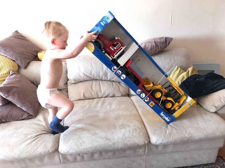 Вот мы подарили 3ке будьдозер самый большой и он начал гонять по паркету так - опираясь всем весом! Я чуть под стол не провалилась от своего подарка 😂, но потом поняла, что паркету так или иначе хана и можно уже расслабиться