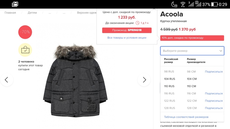 Наталья в Выбор товаров 8 лет Acoola на Lamoda р-р 104 и 110 цена 1233 руб Распродажи. Скидки. Акции. https://www.lamoda.ru/p/ac008egxah98/clothes-acoola-kurtka-uteplennaya/ Можно почитать немного отзывов здесь https://www.wildberries.ru/catalog/4440701/detail.aspx?targetUrl=BP Посмотрите еще 20 записей на эту тему Отменить Ответить Срочный вопрос по купонам в ДМ Большой поезд с кэш 5250 на wb Чаты Беременных Выберите чат: Январята-2026 Февралята-2026 Мартята-2026 Апрелята-2026 Майчата-2026 Июнята-2026 Июлята-2026 Августята-2026