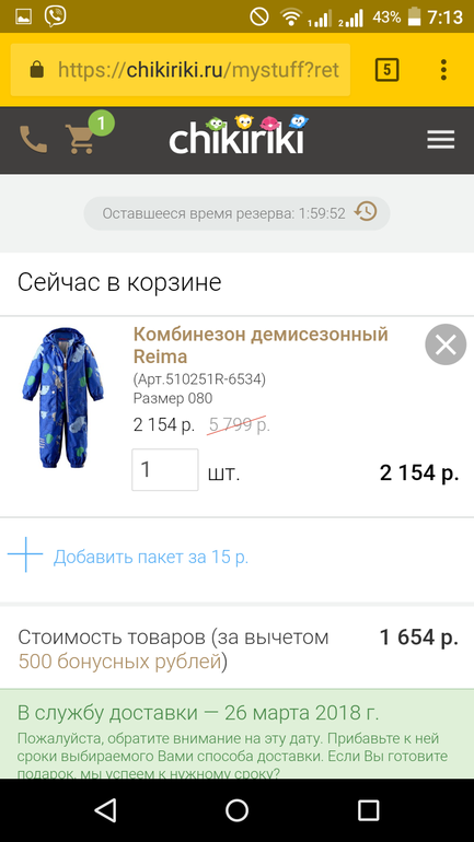 Распродажи. Скидки. Акции.Отличная цена на чики рики, с бонусом майл выходит 1654р, пока держу в корзине, если кому надо, выпущу из резерва.