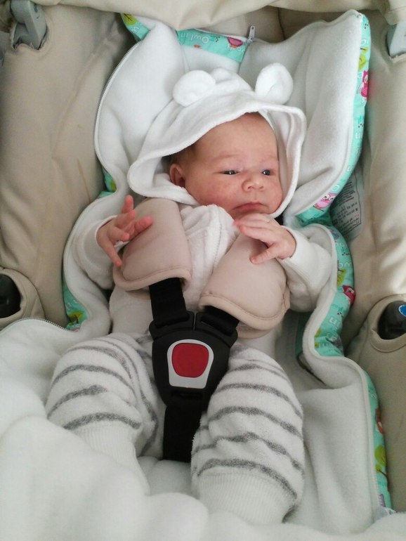 Использовали в автокресле. На фото 1 месяц и 8 месяцев