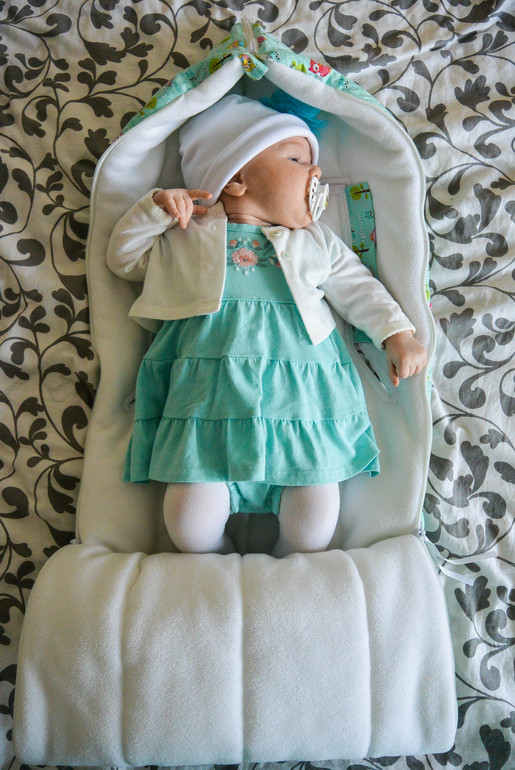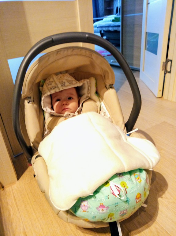 С тех пор в нашем арсенале появился зимний конверт (300 гр термофинна на флисе), который я заказывала для Эм. В нем мы выписывались: