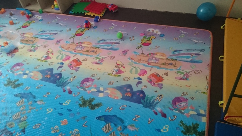 Скажу, что разноцветные ковры очень быстро надоедают и начинают раздражать. У меня со старшей другой фирмы был - babypol, к качеству нареканий нет, но где же были мои глаза, когда я его покупала... ковёр разноцветный, игрушки на нем тоже, игрушки теряются на фоне ковра - жутко надоел, в общем. Видимо, к счастью, что кошка наша его разодрала, ребёнок ему навредить там и не смог))) младшей присматриваю ковёр уже тканевый спокойной расцветки, чтобы не повторять своих ошибок=)
