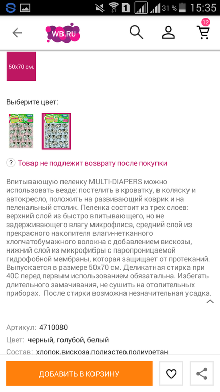 Она предназначена только для защиты постели, во впитывающем слое нет суперабсорбента (он превращает влагу в гель, из-за него в подгузниках сухо, даже если туда пописали). То есть, если случится попис в эту пеленку, ее надо немедленно менять, иначе ребенок будет просто лежать в луже собственной мочи.