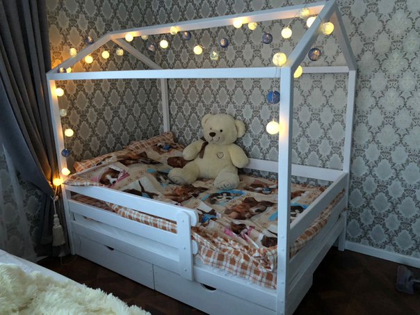 Мне нравится идея с домиками и лампочками/звездочками, чтобы в комнате был спокойный тихий свет. Да и выглядит уютно! Как вам вариант? Моя мама сказала 'нееет, над головой должно быть свободно, течение энергий, пыль на лампочках и тд'.