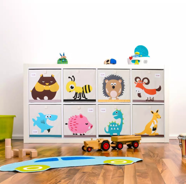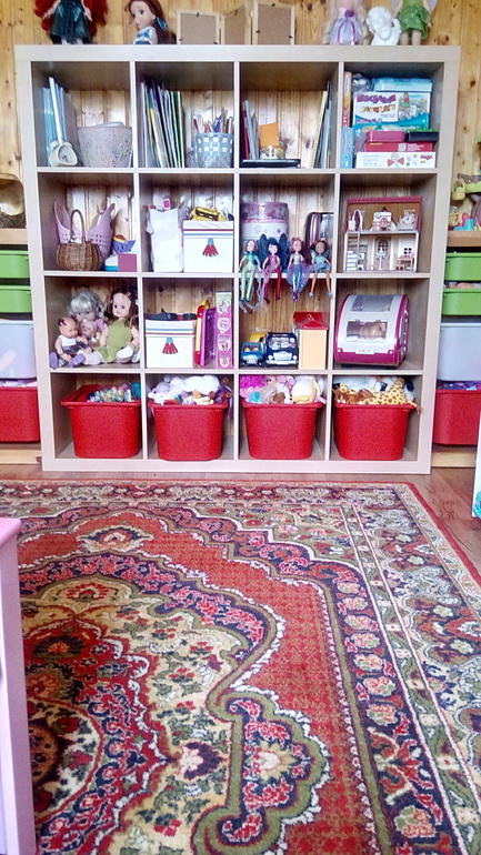 У нас такой стеллаж, поанировали для игрушек в итоге там просто либо книги, либо полный хаос... в таких коробах изначально планировала хранить игрушки: в одном деревянные, в другом мячики, в третьем пупсы, в четвертом лего и т п, по факту дети вываливают все из этих коробок в одну большую кучу, закидывают все потом туда же вразнобой и никакой сортировки! Все в перемешку это ооооочень неудобно, когда дома маленькие дети... ничего не найти в таком хаосе...