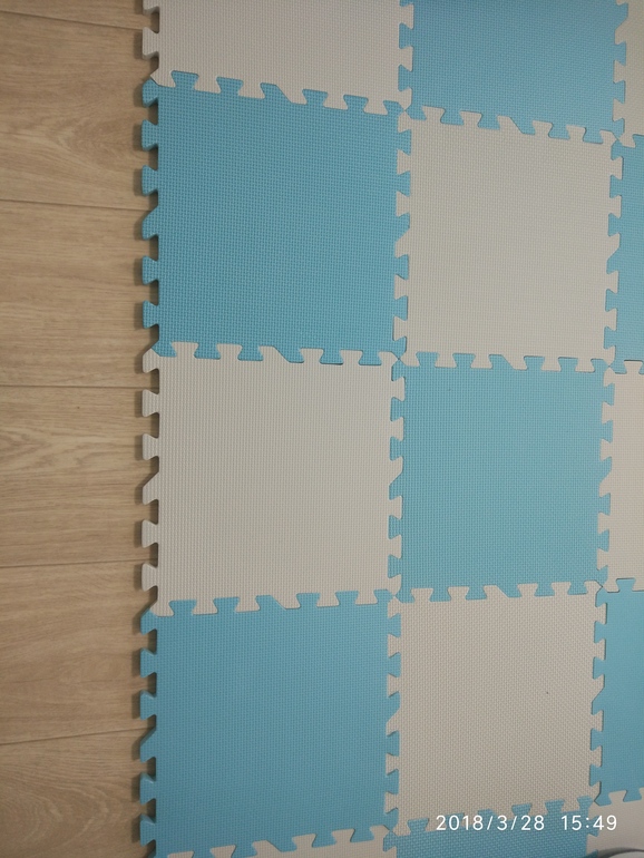 Они запечатанные, не факт, что получится пощупать. И еще они периодически меняются. Я себе купила один комплект для домашнего фитнеса - зеленая сторона была хорошая, пыль не собирала. Потом докупили еще два комплекта, чтобы собрать на весь пол в комнате ребенка. И обломались - какая-то новая серия, зеленая сторона собирает пыль, плюс апофеоз - чуть меньший размер и зеркально расположенные замки пазла по сравнению с первым комплектом. Собрали прямоугольник 3×4, новые комплекты вверх черной стороной, старый - зеленой стороной (привет зеркальным замкам, иначе не вышло бы) по углам, внатяг, еле впихнули.