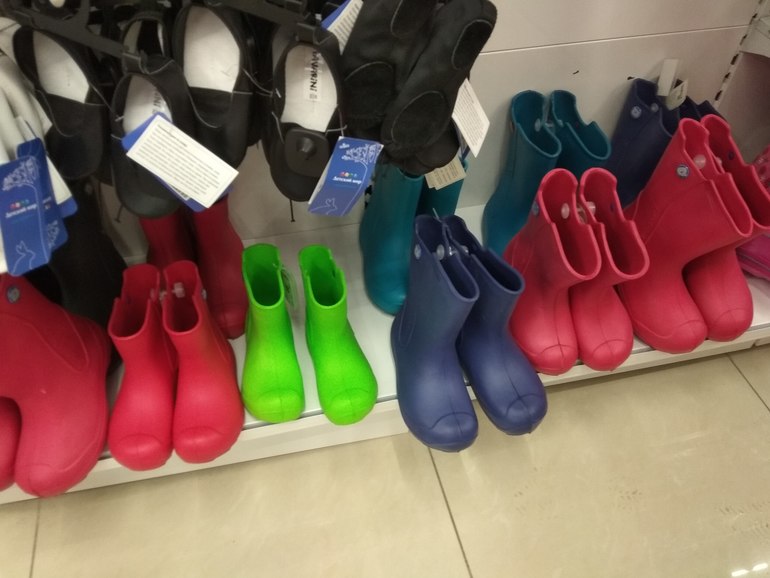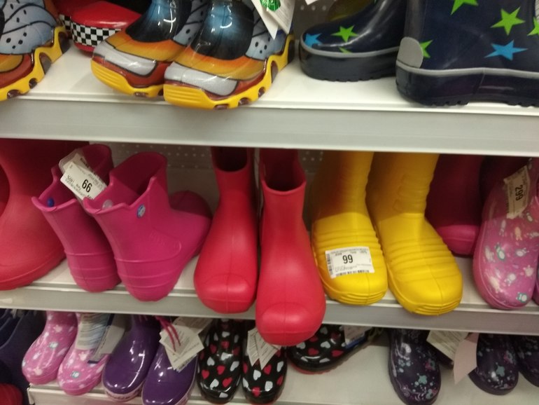 Репортажи из магазиновРаспродажа резиновых сапог.