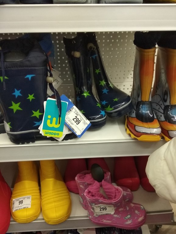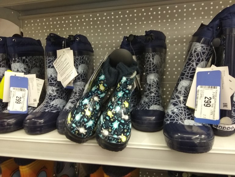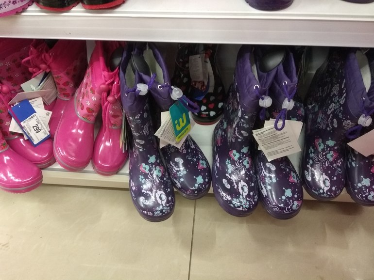 Неделю назад не было ни одних резиновых сапог! Пришлось заказать в интернет магазине с самовывозом из другого магазина. И вчера их не было, на их месте дутики стояли. Только сегодня выставили.