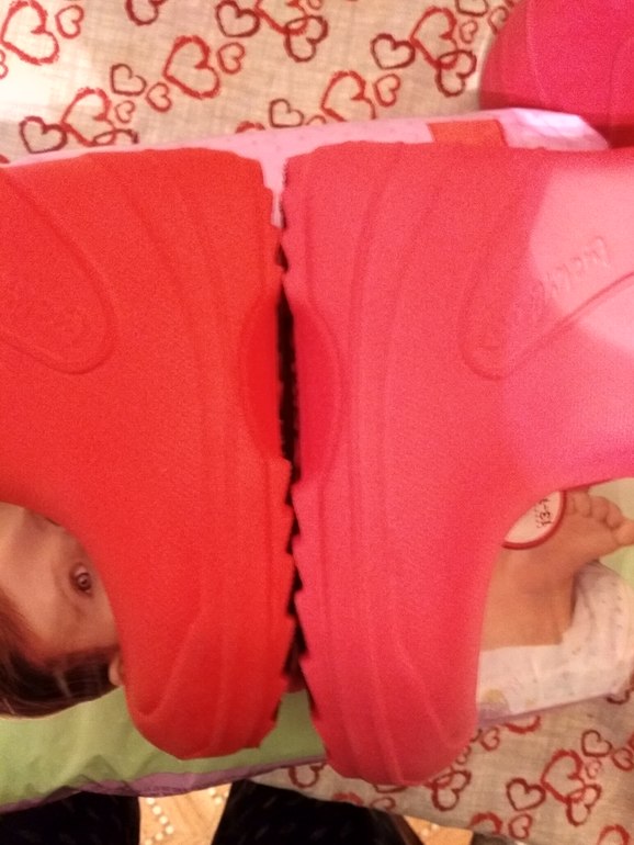У дочки сейчас 23-24 размер (смотря какая обувь)На весну-лето взяла 24-25( у них двойной размер). Сейчас конечно великоваты, но ребенок по дому бегает отлично, ничего не спадает и не загребает мысами.