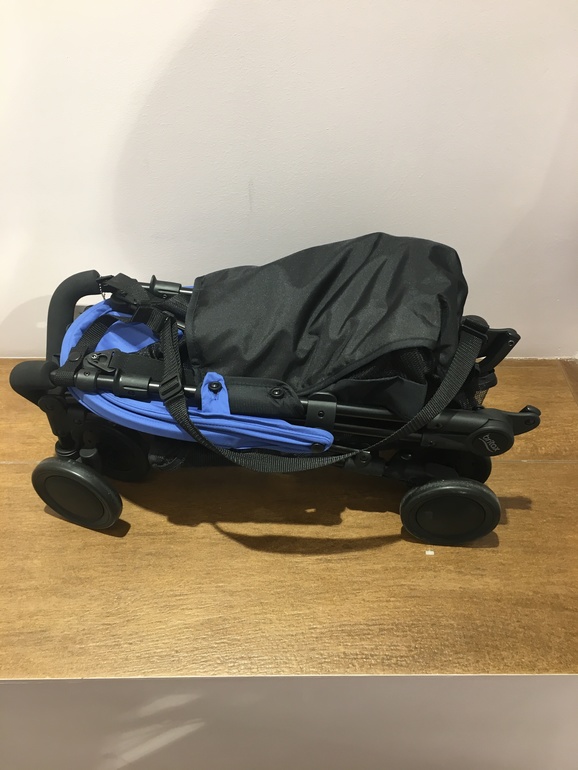 Вес всего 5 кг, складывается до размера небольшого рюкзака (видно на фото), на коляске есть ручка для удобной переноски. Даже я сама закидываю на плечо и с ребенком в руках без неудобств могу нести.