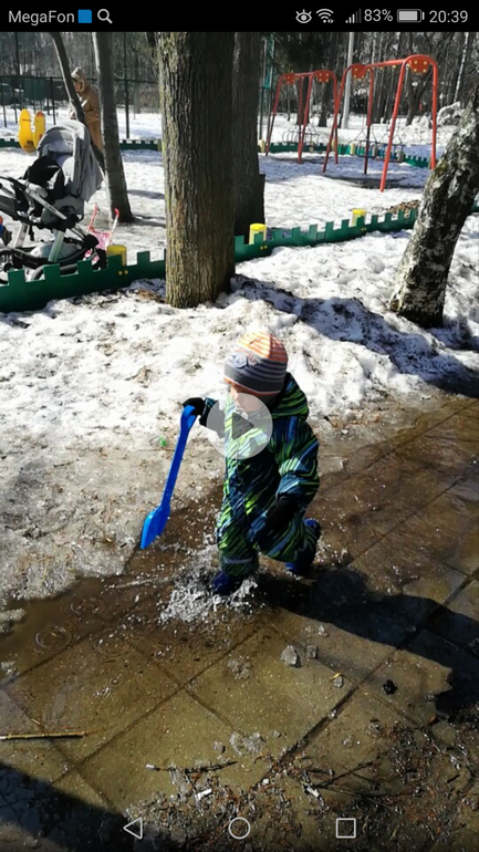 Да,вот сегодня дворники снеговые кучи раскидали и пока до площадки дошли, парочку луж померили. Дочери 1,5года и пока нет интереса в лужи лезть,просто пошлепает по ним и идет дальше..В комбезе резиновом только парится.