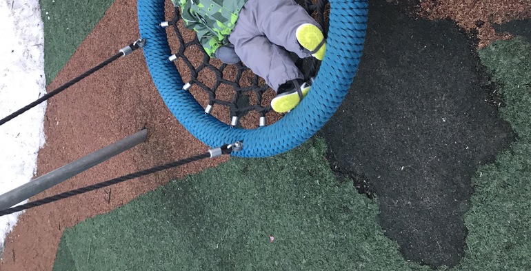 Видела людей в эва и не поняла зачем. У нас снег есть везде, кроме площадок. На них сухо. Дорожки, ведущие к ним тоже сухие.