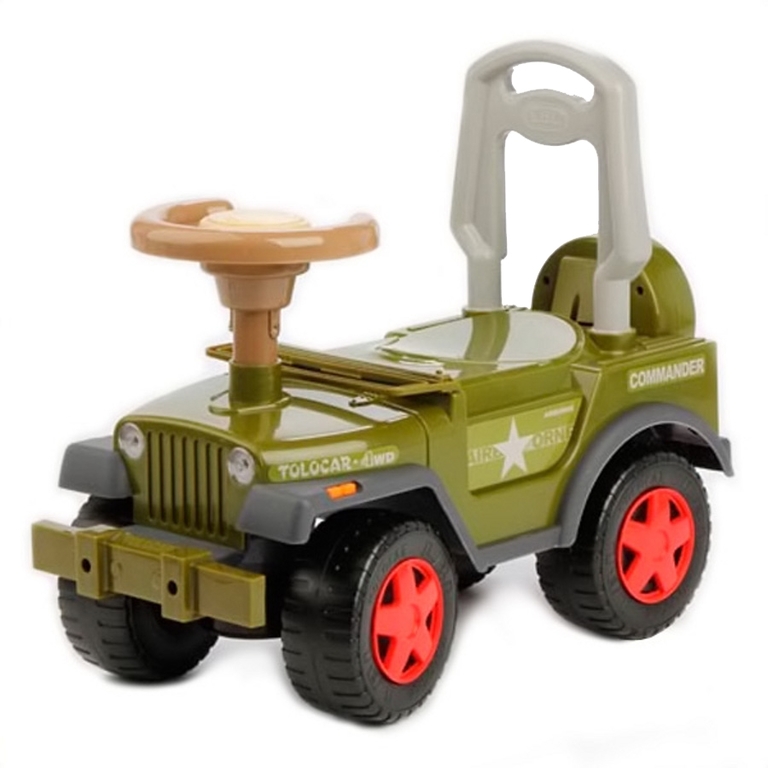 Недавно дарили знакомой военный джип. Ребенку на 1 годик. Он, конечно, кататься еще не умеет, но садится и просит катать. Ребенок в восторге. Покупали в Дочках-Сыночках.