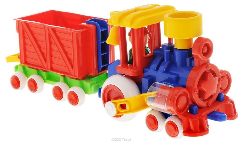 Паровозик пластиковый Форма, серия Детский сад. Отличный, крепкий, с машинистом и вагонами