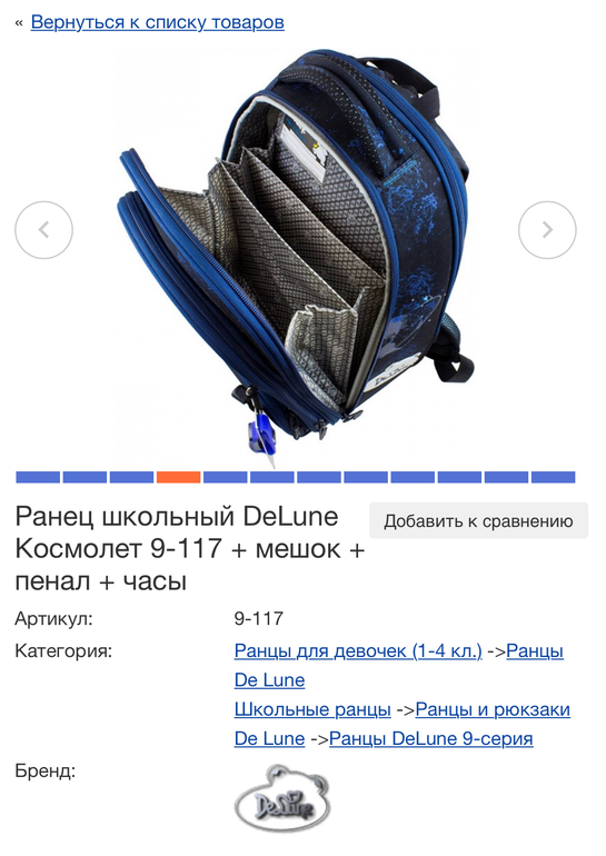 Фирма DeLune - в интернете информация разная. Где то пишут что Италия, где то пишут, что Китай, но бренд российский - в общем отзывов именно об этой модели нет((( Понравился внешне очень!!! И лямки, и спинка, в комплекте мешок для обуви и пенал. Кто-нибудь щупал? Мерил на ребёнка такой рюкзак? Или не морочить себе голову и купить Лего?....