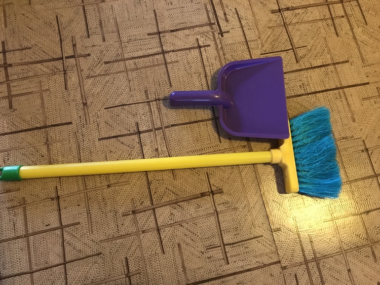 У нас такой набор https://www.obi.ru/shvabry-i-vedra/shetka-ape-s-kachayushimsya-sovkom/p/2371060 ребенок 3х лет может сам прибрать им