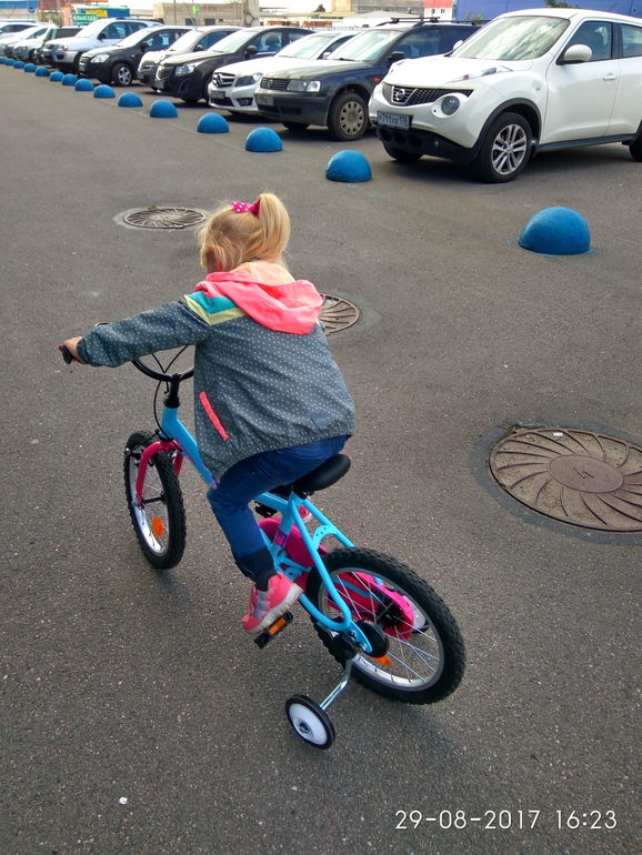 Мы пришли в спортмастер за одним, а ушли с велосипедом. Дочка вцепилась и сразу поехали, сказала, что жить не может без него. Купили, дочка с него не слезала, уже просит, чтобы достали, чтоб начать сезон.
