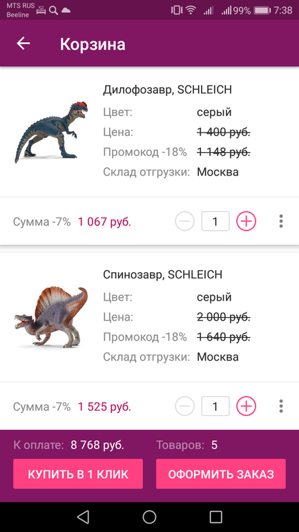 ИгрушкиДевочки. Случайно не видели хорошие цены на фигурки динозавров Schleich? Очень нужно купить динозавра не маленького (не серия мини), они по 2000 каждый. Может есть способ сыкономить? Или скидки бывают дополнительные на сайтах? Как-то видела на my-shop скидка была и ещё личная плюсовалась, но сейчас нет к сожалению.