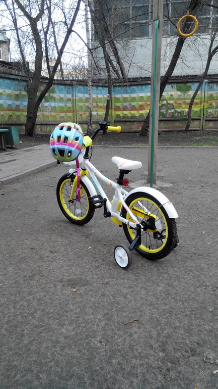 6. Ну и самый долгожданный подарок - ааааавтомобиль! Ой нет, это рано ещё. Вееелосипед! Aspect melissa. Не спрашивайте меня о его характеристиках, я знаю, что он белый и что колёса 16 дюймов))) шлем cube отлично подошёл :-)