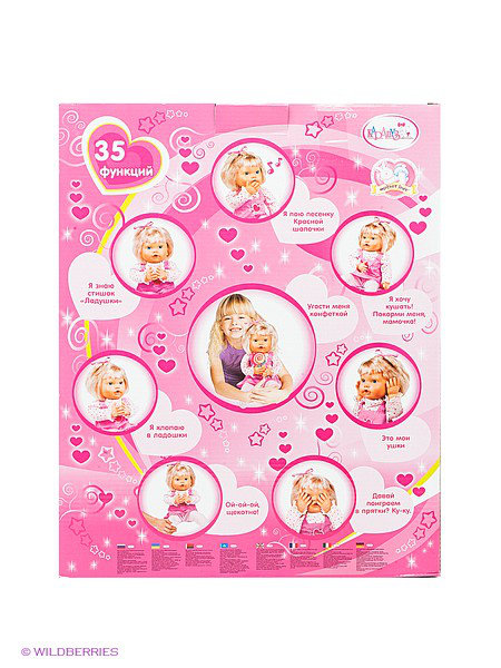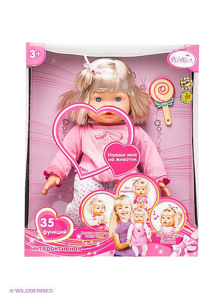 советую поменьше интерактива, с интерактивными игрушками дети играют мало, они фантазию ограничивают, и звук быстро надоедает. Соски и подгузников не было в комплекте, соску можно где-то отдельно докупить, думаю. Из этих я бы выбрала ту, где меньше звуков.