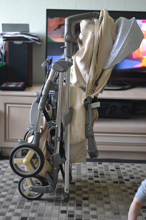 При этом ещё в наличии три прогулки. Лежит в багажнике она, три самоката. Но я так много везде езжу. Плюс это единственная коляска, которую можно брать на борт самолета. Она заменила все мои дорогущие коляски)