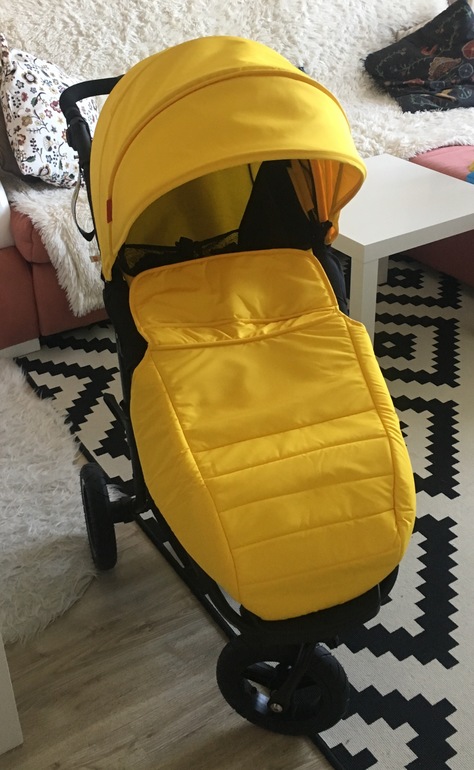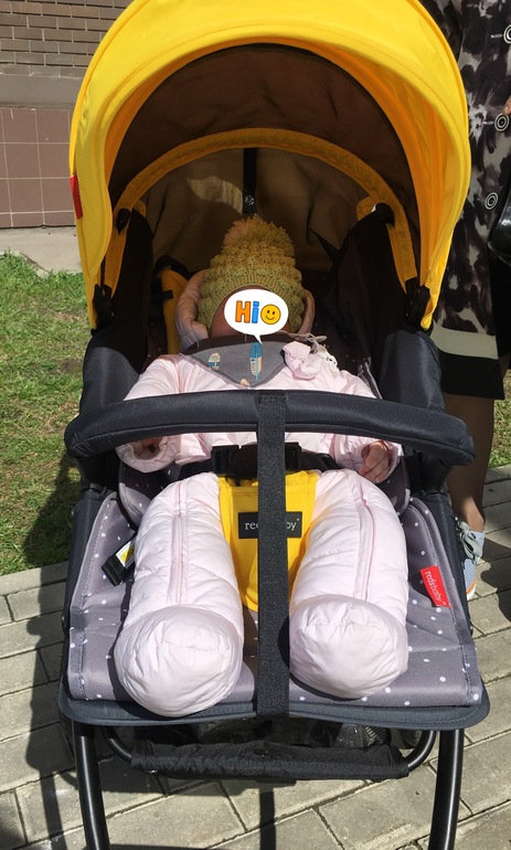 Ребёнка я переложила туда уже в 5 месяцев, было ещё холодно и она всегда спала на прогулке, соответственно чехол на ножки одевали. Но он такой открытый, ее было практически всю видно (конечно, на то он и на ножки:))) и я пришила пуговицы и петельки к чехлу и вуаля, ребёнок закрыт;)