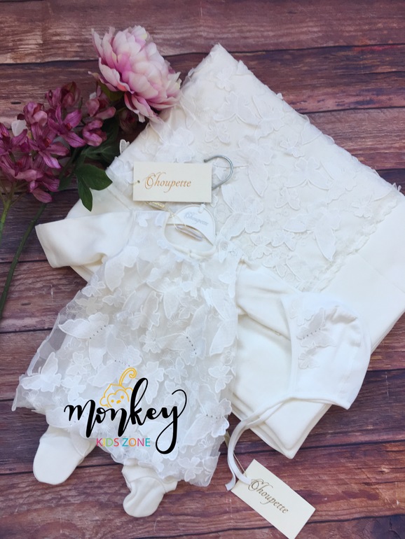 Нарядный слип с юбочкой, плед в который можно укутать, ленты для пледа. Посмотрите как у кейт мидлтон, например. Согласна, что может быть холодно, тогда прозапас взять, например, теплый слип, все это потом пригодится гулять или на крестины.