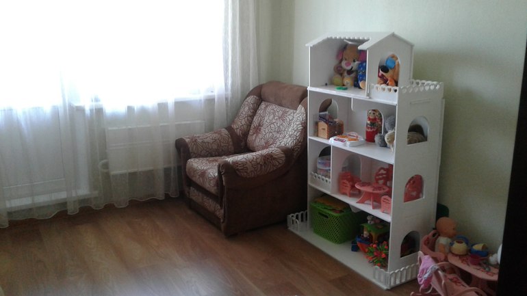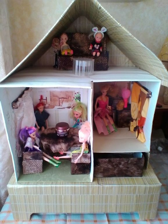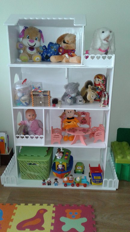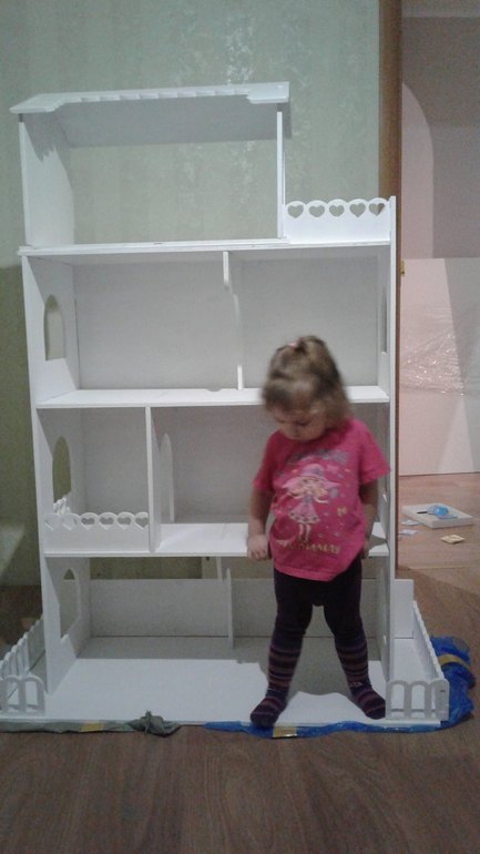 Нам бабушка сделала Размер Сейчас как полку используем В интерьере 😀 так сказать А для другой внучки Дома у себя для внучек-гостей тоже из коробок)))) Мы свой пока никак не украшали. Наша пока не играет в этот дом. Наша двоюродная сестра тоже, хотя ей 4 исполнилось. Все еще впереди, тогда и обустройством займемся. Дома сделаны дсп. Нам мама сделала разборный, так как везла из другого города. Выпиливала сама. Красила акриловой краской, сверху акриловым лаком. А сестре нашей на шурупах, он выглядит более цивильно, там папа шурупил.