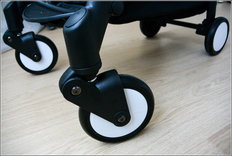 Тормоз только на 1 колесо. Увы, легкость того требует. Вроде бы он есть, вроде бы и нет. При ветре и, например, в автобусе, если не поставить нужной стороной к стене - будет вращаться вокруг своей оси на блокированном колесе. С ребенком внутри скорость увеличивается.